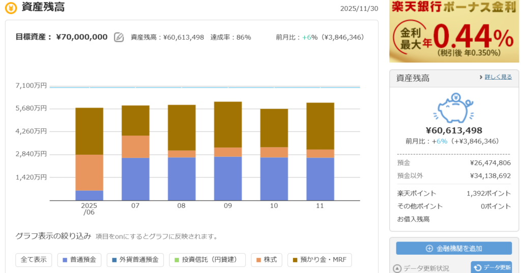 じゃん!今回の結果は、60,613,498円(前月▲1,026,839円)でした。